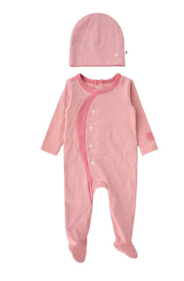 This snug fitting footie is designed with a wrap style and a back snap closure. Available in sizes 3-18 months. It come with a matching bonnet. This footie comes in 2 attractive colors and is crafted with the softest cotton fabric for ultimate comfort.